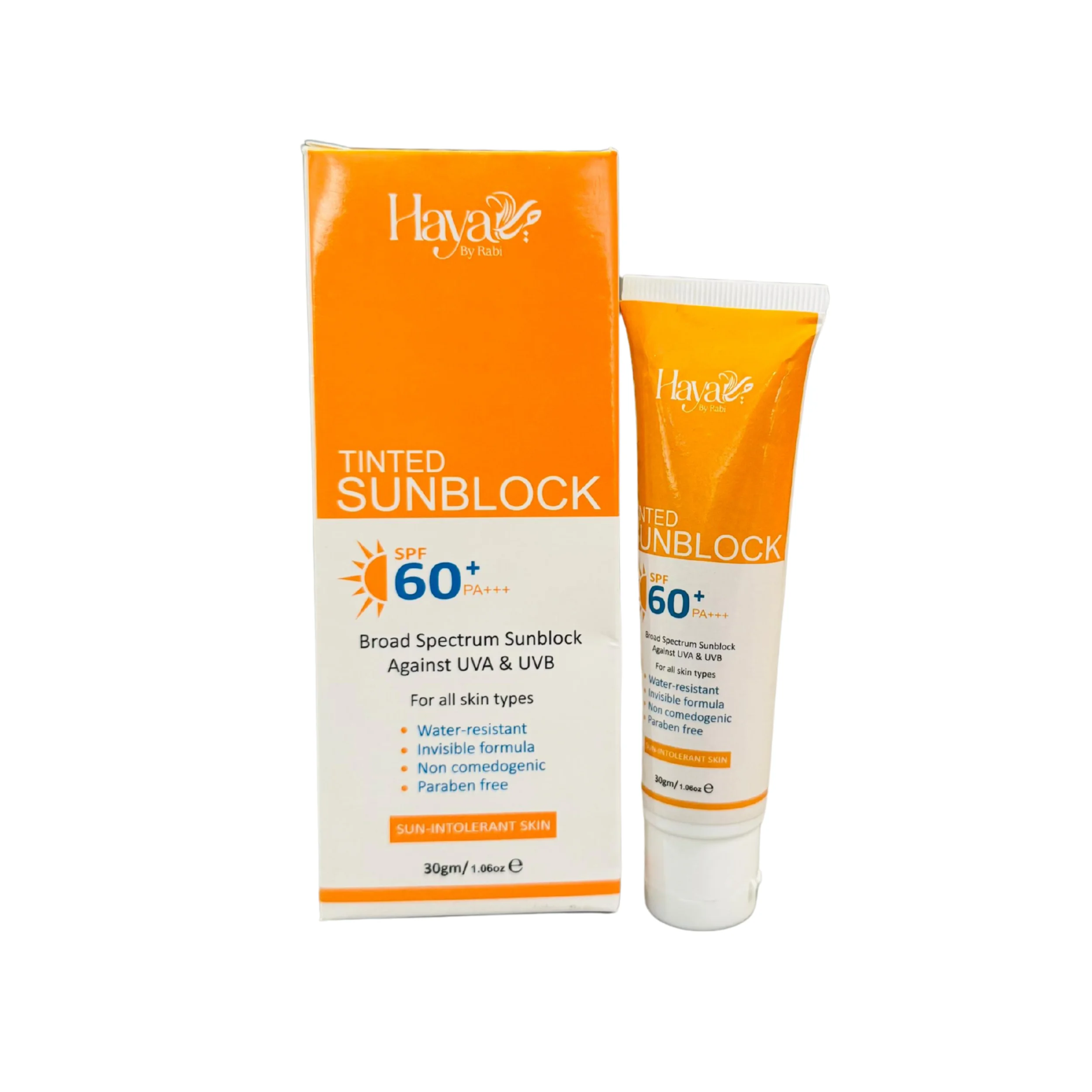 Haya Tinted Sunblock SPF 60+ | Natural Tint | Broad Spectrum UV Protection | Lightweight & Non-Greasy